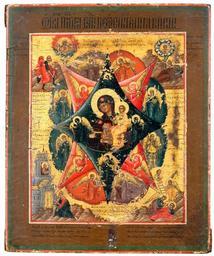 Keywords: Mother of God, Burning bush.jpg en Mother of God Burning bush Tempera on woodpanel Russia mid 19th century 23 5x19 cm ru ICON ИКО А БОГО АТЕРЬ ЕОПАЛИ АЯ КУПИ А Россия Темпе а де ево Се едина 19в Разме ы 23 5х19 см s 1850 https //www bukowskis com/en/auctions/F171/224-icon Bukowskis author other versions PD-Art Uploaded with UploadWizard Marian icons in Russia Multiple-images marian icons |