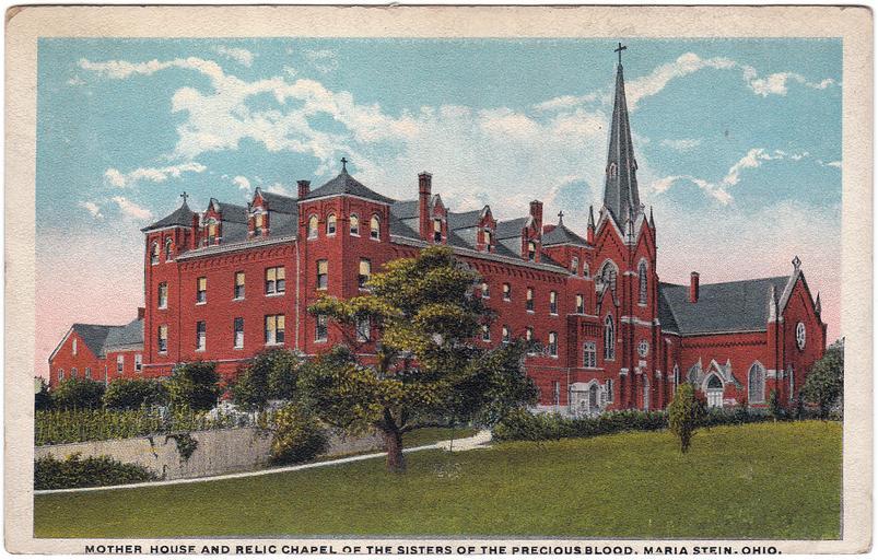 | Keywords: maria stein, ohio mariasteinohio saint marys, ohio saintmarysohio ohio postcard vintage 1923 hermann post card co. hermannpostcardco artchrom churches white border whiteborder white border era whiteborderera 1920s maria stein mariastein saint marys saintmarys st. marys stmarys st. marys, ohio stmarysohio outdoor photo border Description on card: Mother House and Relic Chapel of the Sisters of the Precious Blood, Maria Stein, Ohio. Publisher: Hermann Post Card Co., 4333 N. Lincoln Street, Chicago, Ill. Postmark on back of card: Aug 17, 1923 6:30 p.m. Description on card: Mother House and Relic Chapel of the Sisters of the Precious Blood, Maria Stein, Ohio. Publisher: Hermann Post Card Co., 4333 N. Lincoln Street, Chicago, Ill. Postmark on back of card: Aug 17, 1923 6:30 p.m. |