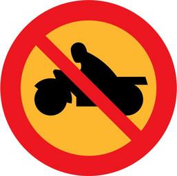 Keywords: motor-bike motorcycle motorbike prohibited forbidden not allowed road sign roadsign street sign