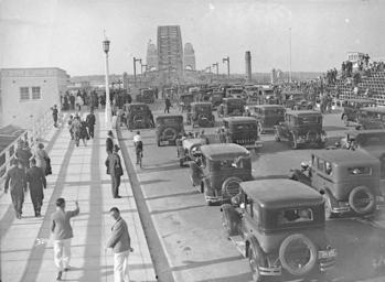 View Original:Motor_cars_driving_across_the_Bridge,_Sydney_Harbour_Bridge_Celebrations,_19_March_1932,_Hall_&_Co..jpg (1400x1028)