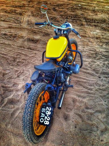 Keywords: motorcycle ural sand desert bike transport yellow body