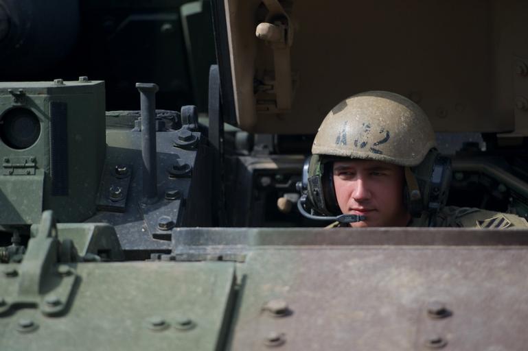 Keywords: noble partner noblepartner army usareur u.s. army usarmy u.s. army europe usarmyeurope tanks war cannon 3id people indoor VAZIANI TRAINING AREA, Georgia — A Soldier assigned to 1st Battalion., 64th Armor Regiment, 1st Brigade, 3rd Infantry Division, drives a Bradley Infantry Fighting Vehicle at Vaziani Training Area, Georgia, May 6, in preparation for Noble Partner 16. The exercise is scheduled to take place May 11 to 26 and will include approximately 1300 participants from the U.S., Georgia and the U.K. Noble Partner 16 is a critical part of Georgia's training for its contribution of a light infantry company to the NATO Response Force (NRF) and enhances Georgian territorial self-defense capability. (Photo by Sgt. Daniel Cole, U.S. Army Europe Public Affairs) VAZIANI TRAINING AREA, Georgia — A Soldier assigned to 1st Battalion., 64th Armor Regiment, 1st Brigade, 3rd Infantry Division, drives a Bradley Infantry Fighting Vehicle at Vaziani Training Area, Georgia, May 6, in preparation for Noble Partner 16. The exercise is scheduled to take place May 11 to 26 and will include approximately 1300 participants from the U.S., Georgia and the U.K. Noble Partner 16 is a critical part of Georgia's training for its contribution of a light infantry company to the NATO Response Force (NRF) and enhances Georgian territorial self-defense capability. (Photo by Sgt. Daniel Cole, U.S. Army Europe Public Affairs) |