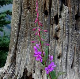 Keywords: mount crested butte mountains outside trail colorado tree stump wild flowers purple flower grey