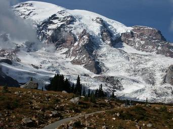 Keywords: Mount Rainier Nisqually Glacier dusk national park Mount-Rainier