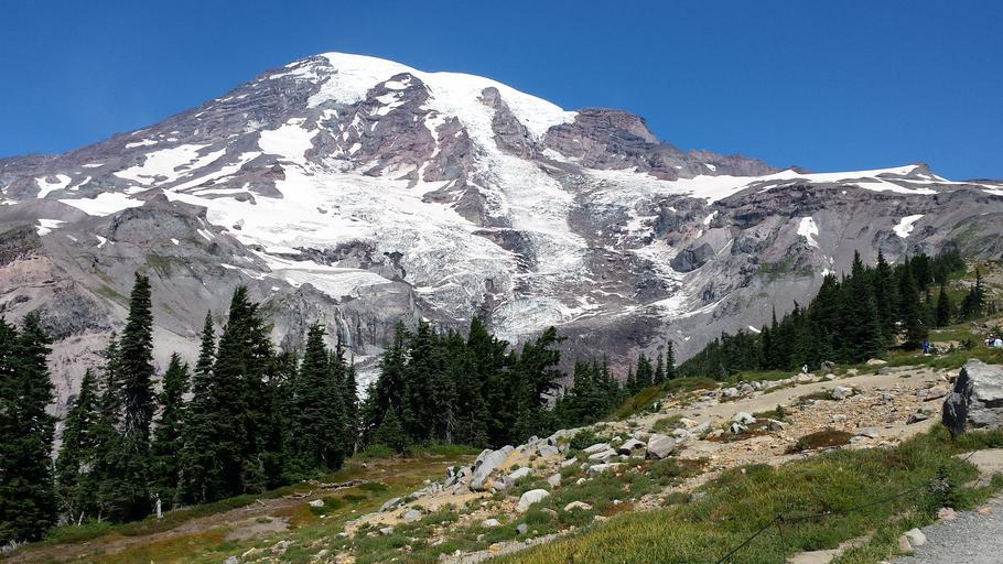 Keywords: mount rainier outdoor park washington mountain hiking glacial ice hike national summit view trees pacific northwest glacier mount ranier summer ice clouds recreation pines massive elevation forest vista dangerous blue