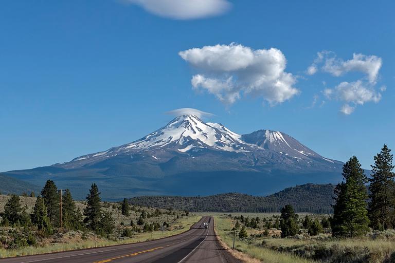 Keywords: mount shasta california mountains volcano landscape forest trees woods nature outside country countryside rural road highway