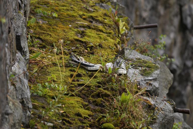 Keywords: mountain cliff moss stone cliffs sneakers