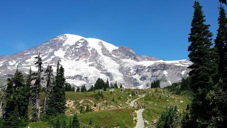 View Original:Mountain-Hiking-Trail-Deep-blue-sky-Mount-Rainier.jpg (3264x1836)