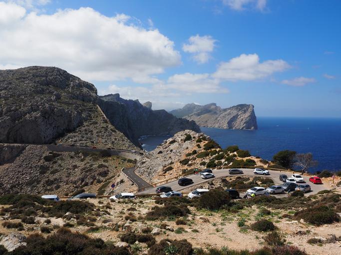 Keywords: mountain landscape mallorca sea booked cliff cap formentor pass road road autos traffic mountains serra de tramuntana headland