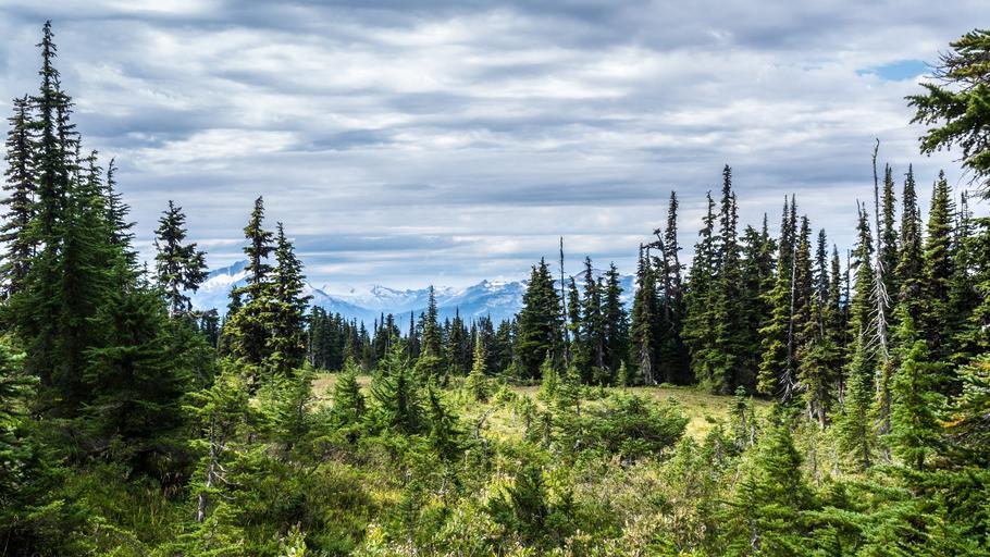 Keywords: mountain snow trees scenic nature landscape vista clouds pine field pine trees wilderness