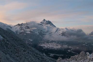 Keywords: mountain sunset sunrise nature landscape sky view clouds scenic massive big above valley high peak summit