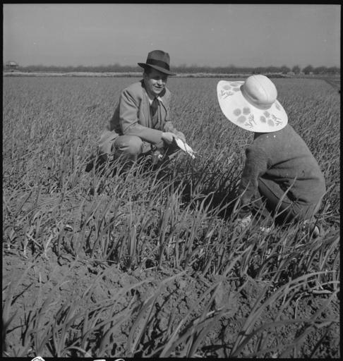 | Keywords: Mountain View, California. John Bird, former Director of Information for the War Relocation Authori . . . - NARA - 537528.jpg Scope and content The full caption for this photograph reads Mountain View California John Bird former Director of Information for the War Relocation Authority speaks to a young woman who is weeding a garlic field in Santa Clara County Farmers and other evacuees of Japanese ancestry will be given opportunities to follow their callings at War Relocation Authority centers where they will spend the duration General notes 537528 Local identifier 210-G-C179 Department of the Interior War Relocation Authority 02/16/1944 - 06/30/1946 NARA-Author Lange Dorothea 1895-1965 Photographer 1372774 <br /> Still Picture Records Section Special Media Archives Services Division NWCS-S National Archives at College Park 8601 Adelphi Road College Park MD 20740-6001 1942-03-30 Record group Record Group 210 Records of the War Relocation Authority 1941 - 1989 Record group ARC 537 Central Photographic File of the War Relocation Authority compiled 1942 - 1945 Series ARC 536000 File unit File unit ARC Variant control numbers NAIL Control Number NWDNS-210-G-C179 Other versions <gallery> File Mountain_View _California _John_Bird _former_Director_of_Information_for_the_War_Relocation_Authori_ _ _ _-_NARA_-_537528 tif tif File Mountain_View _California _John_Bird _former_Director_of_Information_for_the_War_Relocation_Authori_ _ _ _-_NARA_-_537528 jpg jpg </gallery> NARA-cooperation PD-USGov Dorothea Lange Japanese American internment processing in Mountain View California |