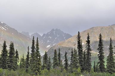 Keywords: mountains alaska denali landscape scenic evergreens conifers