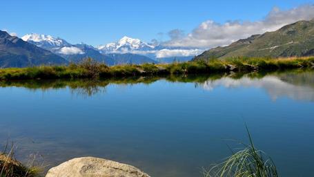 Keywords: mountains bergsee outlook landscape nature sky clouds alpine mirroring water