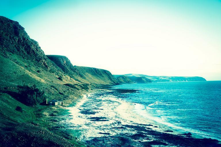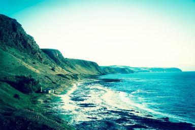 Keywords: mountains hills cliffs coast ocean sea shore waves water blue sky nature landscape