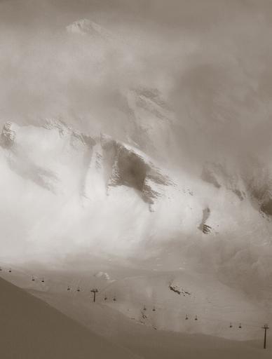 Keywords: mountains mountain switzerland alpine snow fog winter cold scene forward frost forest air clouds cloudiness cloudy dramatic weather black and white light black and white photo landscape nature
