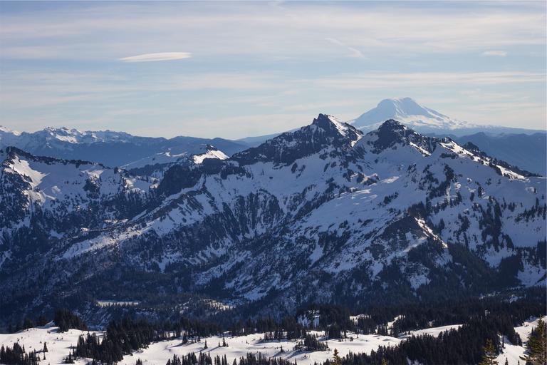 Keywords: mountains peaks cliffs snow sunshine sunny trees nature sky winter landscape