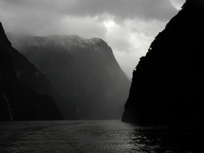 Keywords: mountains rivers foggy misty darkness water flowing calm peaceful nature hills hilly cliffs rocks rocky lakes outdoors landscape scenic scenery black white cloudy sky environment