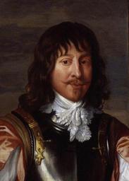 Keywords: people Mountjoy Blount[1], 1st Earl of Newport (ca 1597— 1666), created Baron Mountjoy in the Irish peerage (1617), baron Mountjoy of Thurveston in the English peerage (1627) and Earl of Newport (1628) was appointed master of ordnance to Charles I of England (1634) and played an ambiguous part in the early years of the English Civil War. He was the natural son of Charles Blount, Earl of Devonshire and Penelope, Lady Rich; his father left him a plentiful estate, and he was a member of James I's court, who played in a masque before the king mounted by Viscount Doncaster at Essex House, 8 January 1620/21,[2] was among the entourage of the Earl of Carlisle, employed to offer excuses at the court of Louis XIII, for the passage of Prince Charles through Paris incognito on his way to Spain at the time of negotiations towards the ill-starred "Spanish Match". In July 1627 he was created Earl of Newport in the Isle of Wight; Newport, as he now was, held a rear-admiral's command in the ineffective expedition to relieve La Rochelle in August 1628, for which he was petitioning for payment in the following years. His appointment as Master of Ordnance for his lifetime was granted 31 August 1634; as was expected in the seventeenth century, he derived a tidy fortune from the position. From his sale of gunpowder at exorbitant prices, through the Spanish ambassador, to supply the Spanish fleet attacking Dutch forces in September 1639, he pocketed £1000, and the King, £5000.[3] On his own account he bargained with the ambassador to land soldiers from the Spanish fleet at Dunkirk, at thirty shillings a head, though public neutrality had been enjoined by Charles. Though at Christmas 1639, Newport participated with the King in the extravagant masque on the theme of Philogenes, royal "lover of the People",[4] with the return of the Long Parliament the next year, Newport by degrees joined the forces of opposition in the House of Lords. The turning point came during the trial of Strafford in 1641, when Col. Lord Goring had revealed to Newport an amateurish plot of Royalist officers at Portsmouth to take London by surprise, seize the Tower and somehow rescue the king. Goring betrayed the plot to Newport, who passed on the information to John Pym, who brought it forward at the most dramatic and opportune moment, sealing Strafford's fate in the bill of attainder. When the Civil War broke out, however, Newport served in the royalist army, and took part in the second battle of Newbury in 1644. In January 1646 he was taken prisoner and confined in London on parole. He died at Oxford, leaving two surviving sons, who in turn succeeded to the earldom of Newport and barony of Mountjoy. Both titles became extinct on the death of Henry, the younger of these sons, in 1681. Mountjoy Blount[1], 1st Earl of Newport (ca 1597— 1666), created Baron Mountjoy in the Irish peerage (1617), baron Mountjoy of Thurveston in the English peerage (1627) and Earl of Newport (1628) was appointed master of ordnance to Charles I of England (1634) and played an ambiguous part in the early years of the English Civil War. He was the natural son of Charles Blount, Earl of Devonshire and Penelope, Lady Rich; his father left him a plentiful estate, and he was a member of James I's court, who played in a masque before the king mounted by Viscount Doncaster at Essex House, 8 January 1620/21,[2] was among the entourage of the Earl of Carlisle, employed to offer excuses at the court of Louis XIII, for the passage of Prince Charles through Paris incognito on his way to Spain at the time of negotiations towards the ill-starred "Spanish Match". In July 1627 he was created Earl of Newport in the Isle of Wight; Newport, as he now was, held a rear-admiral's command in the ineffective expedition to relieve La Rochelle in August 1628, for which he was petitioning for payment in the following years. His appointment as Master of Ordnance for his lifetime was granted 31 August 1634; as was expected in the seventeenth century, he derived a tidy fortune from the position. From his sale of gunpowder at exorbitant prices, through the Spanish ambassador, to supply the Spanish fleet attacking Dutch forces in September 1639, he pocketed £1000, and the King, £5000.[3] On his own account he bargained with the ambassador to land soldiers from the Spanish fleet at Dunkirk, at thirty shillings a head, though public neutrality had been enjoined by Charles. Though at Christmas 1639, Newport participated with the King in the extravagant masque on the theme of Philogenes, royal "lover of the People",[4] with the return of the Long Parliament the next year, Newport by degrees joined the forces of opposition in the House of Lords. The turning point came during the trial of Strafford in 1641, when Col. Lord Goring had revealed to Newport an amateurish plot of Royalist officers at Portsmouth to take London by surprise, seize the Tower and somehow rescue the king. Goring betrayed the plot to Newport, who passed on the information to John Pym, who brought it forward at the most dramatic and opportune moment, sealing Strafford's fate in the bill of attainder. When the Civil War broke out, however, Newport served in the royalist army, and took part in the second battle of Newbury in 1644. In January 1646 he was taken prisoner and confined in London on parole. He died at Oxford, leaving two surviving sons, who in turn succeeded to the earldom of Newport and barony of Mountjoy. Both titles became extinct on the death of Henry, the younger of these sons, in 1681. Mountjoy Blount, 1st Earl of Newport after Sir Anthony Van Dyck.jpg File Mountjoy Blount 1st Earl of Newport; George Goring Baron Goring by Sir Anthony Van Dyck jpg Mountjoy Blount 1st Earl of Newport; George Goring Baron Goring object history provenanceEvent 1887 gift National Portrait Gallery London See source website for additional information 762 762 painting Original work circa 1635-1640 after PD-old-100 DEFAUL
