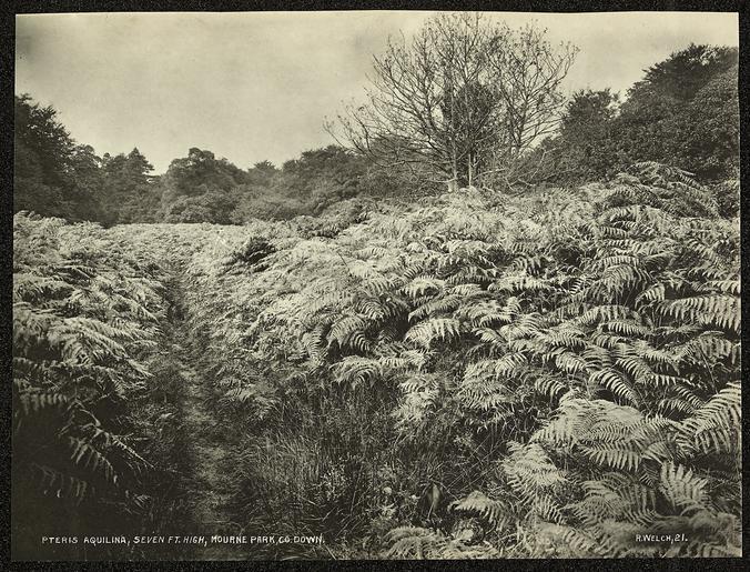 | Keywords: proni welch ireland irish 'country life' countrylife genealogy ancestry ulster belfast 'northern ireland' northernireland 'mourne park' mournepark plants ferns trees photo border outdoor monochrome landscape field Creator: R. Welch (Photographer) Date: 1914 Original Format: Photographic Print Description: Pteris Aquilina, seven foot high, Mourne Park, County Down PRONI Ref: D1403_2~021~A Copying and copyright: Please see www.proni.gov.uk/index/research_and_records_held/copying_... For Copy Orders, contact: Email: proni@dcalni.gov.uk For fees and charges see: www.proni.gov.uk/index/about_proni/are_there_any_fees_and... Creator: R. Welch (Photographer) Date: 1914 Original Format: Photographic Print Description: Pteris Aquilina, seven foot high, Mourne Park, County Down PRONI Ref: D1403_2~021~A Copying and copyright: Please see www.proni.gov.uk/index/research_and_records_held/copying_... For Copy Orders, contact: Email: proni@dcalni.gov.uk For fees and charges see: www.proni.gov.uk/index/about_proni/are_there_any_fees_and... |