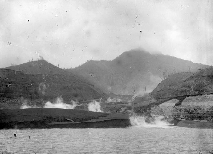 | Keywords: Mouth of the Wallibou River Boiling Mud YORYM-TA0035.jpg Mouth of the Wallibou river c f Phil Trans Roy Soc A200 pl 23 fig 1 View from sea showing valley filled with hot ash deposits depicted people depicted place Wallibou River Saint Vincent 1902 Black and White glass Lantern slide Institution Yorkshire Museum Natural History Plate 23 in cite journal Anderson Tempest John S Flett Report on the Eruptions of the Soufriére in St Vincent in 1902 and on a Visit to Montagne Pelée in Martinique Part I Philosophical transactions of the Royal society of London 1903 200 A 353-553 https //archive org/details/reportoneruptio00fletgoog 19 November 2013 object history exhibition history credit line Yorkshire Museum York Museums Trust accession number YORYM TA35 The Tempest Anderson Photographic Archive held at York Museums Trust <br> York Museums Trust image PD-old-100 PD-US Uploaded with UploadWizard Images from the Tempest Anderson Collection vulcanology |