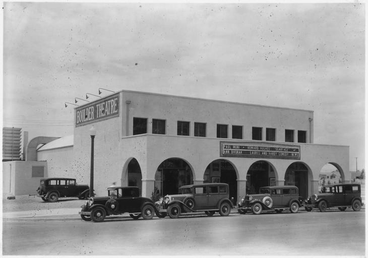 Keywords: "Moving picture theater operated under permit at Boulder City, Nevada." - NARA - 293717.jpg NARA-image-full Moving picture theater operated under permit at Boulder City Nevada The marquee says Paul Muni in Howard Hughes ' Scarface with Ann Dvorak Laurel and Hardy Comedy News Scope and content Photograph from Volume Two of a series of photo albums documenting the construction of Hoover Dam Boulder City Nevada General notes 293717 Local identifier Department of the Interior Bureau of Reclamation Engineering and Research Center 05/18/1981 - 03/04/1988 NARA's Rocky Mountain Region Denver NRGA Building 48 Denver Federal Center West 6th Avenue and Kipling Street Denver CO 80225-0307 1932-07-28 Record group Record Group 115 Records of the Bureau of Reclamation 1889 - 2008 Record group ARC 444 Photograph albums compiled 1903 - 1972 Series ARC 293611 File unit File unit ARC Variant control numbers NAIL Control Number NRG-115-CONSTPHO85006-BC21351 Other versions <gallery> File Moving_picture_theater_operated_under_permit_at_Boulder_City _Nevada _-_NARA_-_293717 tif tif version File Boulder-theatre jpg September 2008 File Panorama of Boulder City Nevada from Water Tank Hill showing construction progress to date - NARA - 293701 jpg Panorama of Boulder City with the theater seen in center/center-right </gallery> 35 58 40 N 114 50 3 W region US NARA-cooperation PD-USGov Scarface 1932 film Marquee Boulder Theatre Boulder City Nevada 1932-07-28 Streets in Boulder City Nevada Arizona Street Photos of Boulder City Nevada from NARA Cinema |