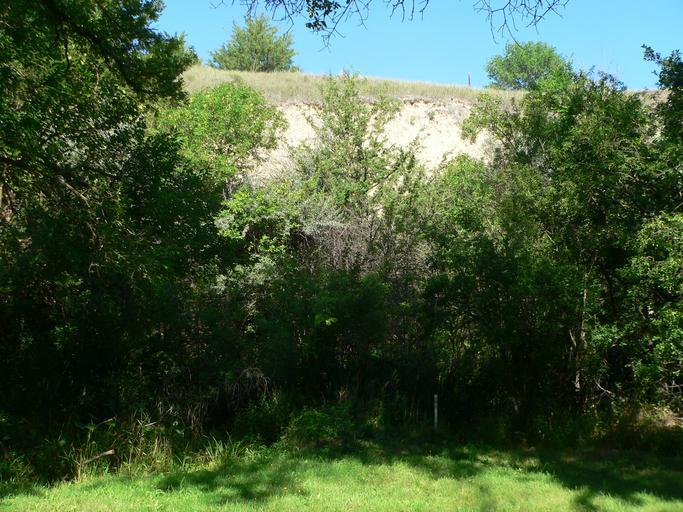 | Keywords: Mowry Bluff site from E 1.JPG en View of the Mowry Bluff archaeological site in Frontier County Nebraska Camera is on the floodplain of Medicine Creek facing generally westward; a weir with a stream-gaging station is in the creek behind the photographer A very small creek runs at the base of the dirt cliff in the photo 2013-08-10 10 25 00 own Ammodramus cc-zero Pictures by Ammodramus Mowry Bluff archaeological site Frontier County Nebraska Uploaded with UploadWizard | ||||