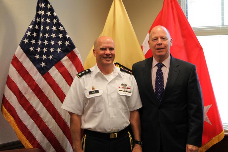 Keywords: army army reserve armyreserve ses imcom installation management command installationmanagementcommand ltg dahl ltgdahl mg patterson mgpatterson leader visit leadervisit Lt. Gen. Kenneth Dahl, Commanding General for U.S. Army Installation Management Command (left), meets with Mr. James Balocki, Chief Executive Officer and Director, Services and Installations, U.S. Army Reserve Command, at IMCOM headquarters on Joint Base San Antonio, Texas, April 18, 2016. (U.S. Army photo by Michael Burkhalter.) Lt. Gen. Kenneth Dahl, Commanding General for U.S. Army Installation Management Command (left), meets with Mr. James Balocki, Chief Executive Officer and Director, Services and Installations, U.S. Army Reserve Command, at IMCOM headquarters on Joint Base San Antonio, Texas, April 18, 2016. (U.S. Army photo by Michael Burkhalter.) |