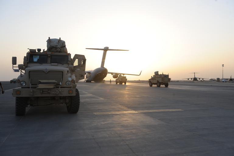 Keywords: MRAP loaded onboard C-17 Globemaster III 090825-N-PF790-881.jpg en U S airmen with the 386th Air Expeditionary Wing and soldiers assigned to Third Army prepare to load mine-resistant ambush-protected vehicles onto an Air Force C-17 Globemaster III aircraft Aug 25 2009 at an undisclosed location in Southwest Asia U S Navy photo by Mass Communication Specialist 2nd Class Kim Harris/Released 2009-08-25 Petty Officer 2nd Class Kim Harris https //www dvidshub net/image/665974 090825-N-PF790-881 2012-09-17 05 22 UNDISCLOSED LOCATION PD-USGov-Military-Navy Boeing C-17 Globemaster III Images from DoD uploaded by Fæ |