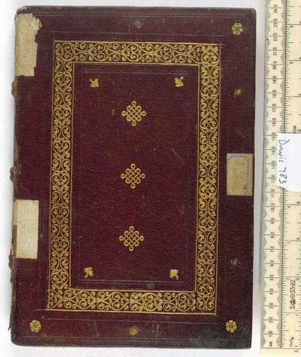 | Keywords: -MS- Ducal commision from Doge Andrea Gritti to Giovanni Francesco Balbi as Count of Pola - Upper cover (Davis783).jpg Style Dogale commission Knotwork/ropework Panel design; Caption Upper cover; Colour Brown; Edge Unspecified exhibition history Decorative Technique Tooled in gold; Cover Material Goatskin includes morocco turkey etc Agnese Binder may be Bartolomeo di Giovanni da Fino ; Macchi states; Venice 1525-1550 A Hobson Renaissance book collecting Appendix 10 Bindings by the Agnese binder p 262-264 I Ducal Commissioni and Capitulari c Of the Doge Andrea Gritti n 20 p 262 To Giovanni Francesco Balbi as Count of Pola 1529 Davis 783 For enlargement facilities please use entry in the Digitised Manuscripts site; http //www bl uk/manuscripts/ object history Text 1529; Venice; Unspecified object type Cc-zero place of creation Binding Italy place of discovery M M Foot The Henry Davis Gift Vol III London 2010 British Library image http //www bl uk/catalogues/bookbindings/LargeImage aspx RecordId 020-000004934 ImageId ImageId 42072 Copyright BL MS Ducal commision from Doge Andrea Gritti to Giovanni Francesco Balbi as Count of Pola Uploaded with GWToolset MS Ducal commision from Doge Andrea Gritti to Giovanni Francesco Balbi as Count of Pola - Upper cover Davis783 http //www webarchive org uk/bldatasets/bindings/6649_4 jpg Bookbinding 16th-century bookbinding British Library Bookbindings |