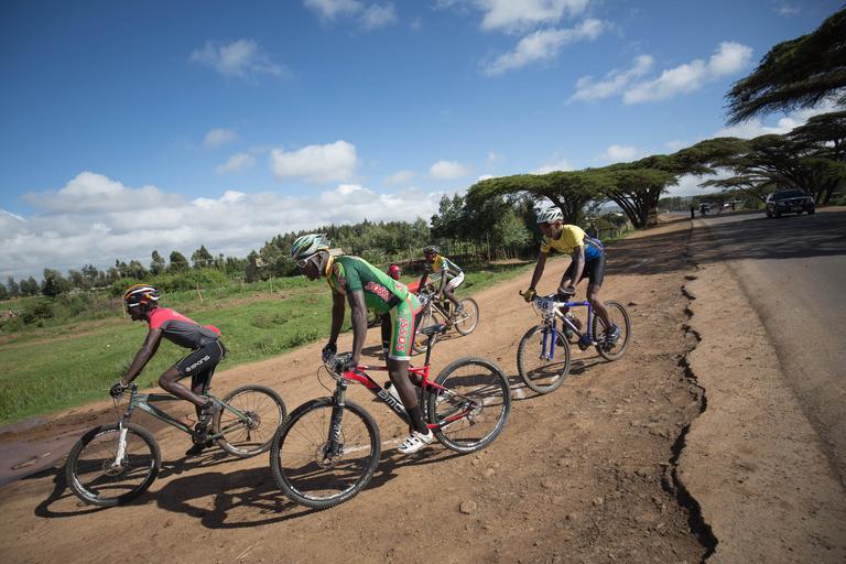 | Keywords: vehicle bike outdoor KENYA, Laikipia: In a photograph taken by Make it Kenya 24 November 2015, riders leave a tarmac rode to follow a cross-country course outside Timau town in Laikipia County, 250km north of the Kenyan capital Nairobi, on the fourth and final day of the Mt. Kenya Epik cycling challenge. The 4-day mountain biking adventure challenge race circumnavigates the Mount Kenya region and this inaugural event attracted both Kenyan and international riders from as a far afield as Norway and Japan. The Epik was established to attract sports tourism to the Mt. Kenya region and showcase what it has to offer the outdoor, extreme sports enthusiast while providing riders the opportunity to interact with local communities and witness some of the beautiful scenery and landscapes surrounding Mt. Kenya that otherwise might not seen. The two-man team of Kenyan riders Joseph Echuwa and Samwel Mwangi won the 300km, 4-day race crossing the finish line in 10hrs 31mins and 05secs. MANDATORY CREDIT MAKE IT KENYA PHOTO / STUART PRICE. KENYA, Laikipia: In a photograph taken by Make it Kenya 24 November 2015, riders leave a tarmac rode to follow a cross-country course outside Timau town in Laikipia County, 250km north of the Kenyan capital Nairobi, on the fourth and final day of the Mt. Kenya Epik cycling challenge. The 4-day mountain biking adventure challenge race circumnavigates the Mount Kenya region and this inaugural event attracted both Kenyan and international riders from as a far afield as Norway and Japan. The Epik was established to attract sports tourism to the Mt. Kenya region and showcase what it has to offer the outdoor, extreme sports enthusiast while providing riders the opportunity to interact with local communities and witness some of the beautiful scenery and landscapes surrounding Mt. Kenya that otherwise might not seen. The two-man team of Kenyan riders Joseph Echuwa and Samwel Mwangi won the 300km, 4-day race crossing the finish line in 10hrs 31mins and 05secs. MANDATORY CREDIT MAKE IT KENYA PHOTO / STUART PRICE. |