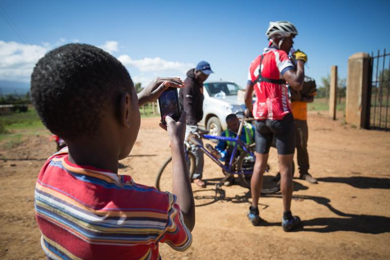 Keywords: outdoor KENYA, Laikipia: In a photograph taken by Make it Kenya 23 November 2015, a young boy films riders in the Mt. Kenya Epik cycling challenge race on a smartphone in a rural village in Laikipia County, 250km north of the Kenyan capital Nairobi. The Mt Kenya Epik is a 4-day mountain biking adventure challenge race that circumnavigates the Mount Kenya region and has attracted both Kenyan and international riders from as a far afield as Norway and Japan. Taking place between 21-24 November, the Epik was established to attract sports tourism to the Mt. Kenya region and showcase what it has to offer the outdoor, extreme sports enthusiast says Julie Wahome, Managing Director of Africa Extreme, the company which organisesd the Epik. “We were looking to raise the profile of mountain biking in both Kenya and internationally and at the same time provide a platform for local environmental issues from the areas surrounding Mount Kenya”, says Wahome, whose company also organises other extreme off-the-beaten-track sporting events in Kenya, including cycling, running and mountain biking. One of the great things about cycling through this area , says Wahome, is that it offers the participants the opportunity to interact with local communities and also to witness some of the beautiful scenery and landscapes surrounding Mt. Kenya that you otherwise might not see. MANDATORY CREDIT MAKE IT KENYA PHOTO / STUART PRICE. KENYA, Laikipia: In a photograph taken by Make it Kenya 23 November 2015, a young boy films riders in the Mt. Kenya Epik cycling challenge race on a smartphone in a rural village in Laikipia County, 250km north of the Kenyan capital Nairobi. The Mt Kenya Epik is a 4-day mountain biking adventure challenge race that circumnavigates the Mount Kenya region and has attracted both Kenyan and international riders from as a far afield as Norway and Japan. Taking place between 21-24 November, the Epik was established to attract sports tourism to the Mt. Kenya region and showcase what it has to offer the outdoor, extreme sports enthusiast says Julie Wahome, Managing Director of Africa Extreme, the company which organisesd the Epik. “We were looking to raise the profile of mountain biking in both Kenya and internationally and at the same time provide a platform for local environmental issues from the areas surrounding Mount Kenya”, says Wahome, whose company also organises other extreme off-the-beaten-track sporting events in Kenya, including cycling, running and mountain biking. One of the great things about cycling through this area , says Wahome, is that it offers the participants the opportunity to interact with local communities and also to witness some of the beautiful scenery and landscapes surrounding Mt. Kenya that you otherwise might not see. MANDATORY CREDIT MAKE IT KENYA PHOTO / STUART PRICE.