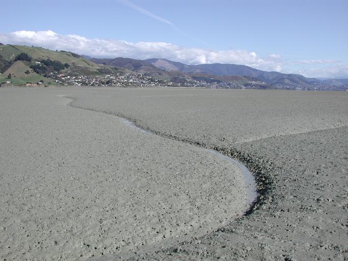 Keywords: Mudflats of Nelson Haven at low tide.jpg Water channels in the mudflats of Nelson Haven at low tide Nelson in the distance Own 2011-10-09 Pseudopanax wikipedia en 41 12 22 S 173 19 20 E Mudflats in New Zealand Nelson Region