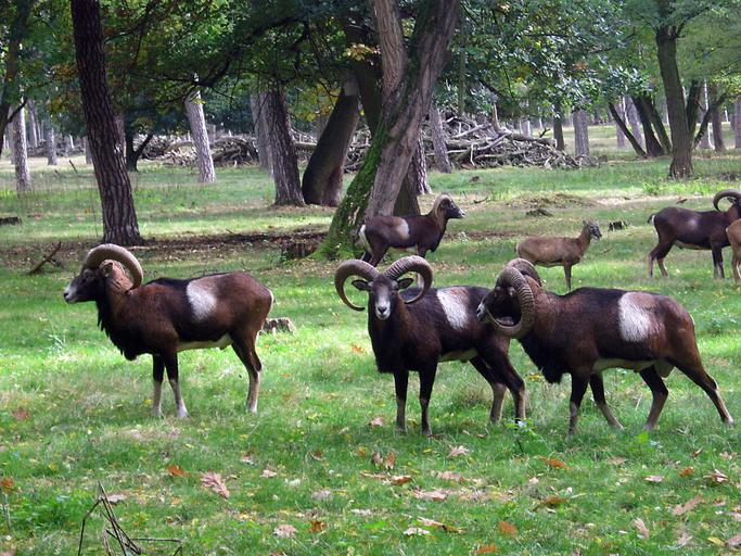 Keywords: muflon sheep goat horns wild flock autumn forest zoo forest wildlife park