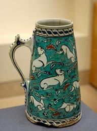 | Keywords: Mug animals Iznik UCAD13072.jpg  Mug with animals Earthenware painted with slip on slip under transparent glaze Chope aux animaux Céramique siliceuse décor peint à l'engobe sur engobe et sous glaçure tranparente Museum Louvre Department of Islamic Art Richelieu lower ground floor room 12 object history credit line Gift of the marquess and marchioness de Saint-Seine in memory of Raoul Deveaux 1906; on deposit of the Museum of Decorative Arts in Paris 1993 accession number Louvre number 13072 Jastrow 2006 other versions İznik ceramics in the Louvre Museum Mugs Hares in art Scroll ornaments |