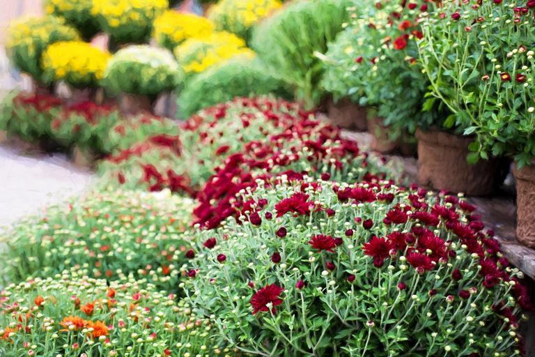 Keywords: mums autumn fall season flowers autumn background seasonal red colorful