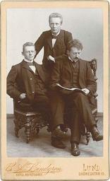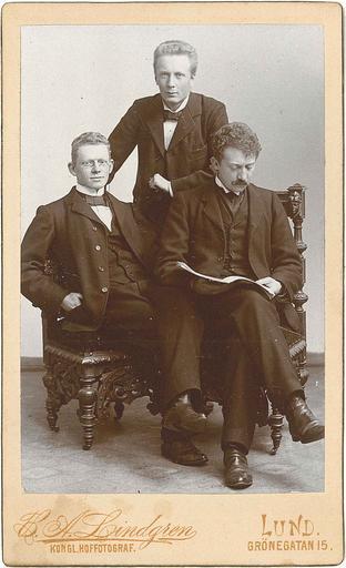 Keywords: Munck af Rosenschöld, Mortimer med vänner 1895.jpg sv Sedermera landshövdingen i Jämtlands län sv Mortimer Munck af Rosenschöld 1873-1942; stående under sin studietid i Lund med två kamrater Carl Thulin t v; sedermera lektor och Otto Jonasson en Standing sv Mortimer Munck af Rosenschöld 1873-1942 Swedish civil servant and later County governor of Jämtland with two friends Carl Thulin and Otto Jonasson during their time as students at Lund University 1895 Original photograph in the collections of sv Akademiska Föreningens Arkiv Studentmuseum The Archives and Museum of the Academic Society in Lund Sweden Digitalized as part of Category Images from Akademiska Föreningens arkiv a joint project by users Hedning and FredrikT sv Berndt August Lindgren 1852-1904 Custom license marker 2014 06 10 PD-Sweden-photo PD-old-100 Uploaded with UploadWizard County Governors of Sweden Civil servants of Sweden 1873 births 1942 deaths Berndt August Lindgren Images from Akademiska Föreningens arkiv |