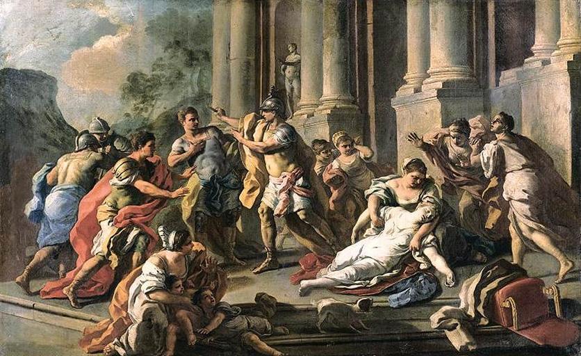 Keywords: Mura, Francesco de - Horatius Slaying His Sister after the Defeat of the Curiatii - c. 1760.jpg Artwork Creator Francesco de Mura other date ca 1760 oil canvas size cm 89 143 Private collection Location object history credit line accession number WGA link 16342 http //www wga hu/art/m/mura/horatius jpg http //www wga hu/html/m/mura/horatius html painting historical Italian 1701-1750 PD-old-100 Francesco de Mura Horatius Slaying His Sister after the Defeat of the Curiatii Horatii Murder in art 1760s paintings from Italy Oil paintings of people Slaying WGA form painting WGA type historical WGA School Italian WGA time period 1701-1750 18th-century paintings in unidentified private collections 1740s oil on canvas paintings 1740s paintings in private collections Uploads by Mattes from external sources |