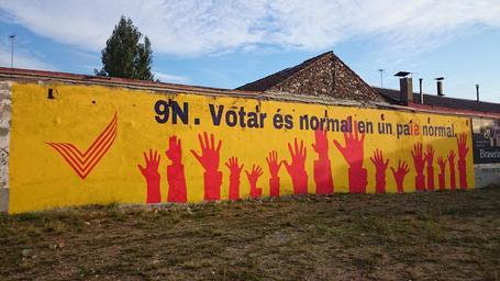 Keywords: Mural Sant Celoni referèndum independència 9N.JPG Sant Celoni Vallès Oriental defending the right to vote in a referendum to decide whether the independence or not of Catalonia Sant Celoni Vallès Oriental defensant el dret a vot en referèndum per decidir sobre la independència o no de Catalunya own Jove September 1 2014 Catalan self-determination referendum 2014 Assemblea Nacional Catalana Photographs taken on 2014-09-01 |
