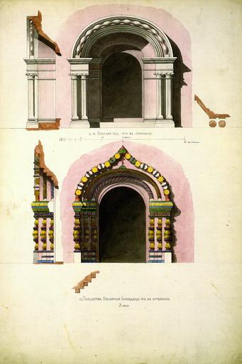 | Keywords: Muscovite Window and Portals 17th century 05.jpg Portals of the 17th century Moscow churches Ink and watercolour sheets from the Moscow Archaeological Society files now in the Museum of Architecture collection Scan from И Л Бусева-Давыдова Культу а и искусство в эпоху пе емен - Инд ик 2008 ISBN 978-5-85759-439-1 Middle of the 19th century Unsigned; author to be verified; the project was led by en Mikhail Bykovsky ru Быковский ихаил До имедонтович 1801-1885 PD-RusEmpire Surveys of Moscow churches from the Museum of Architecture collection Portals in Russia ImageNote 1 110 25 1840 1100 2000 3000 2 Х ам святого иколая Чудотво ца в Столпах А мянский пе еулок Church of Saint Nicholas in Stolpy destroyed stood in Armyansky Lane ImageNoteEnd 1 ImageNote 2 100 1150 1850 1460 2000 3000 2 Church of Nativity of Theotokos in Butyrky largely destroyed Х ам Рождества П есвятой Бого одицы в Буты ках ImageNoteEnd 2 |