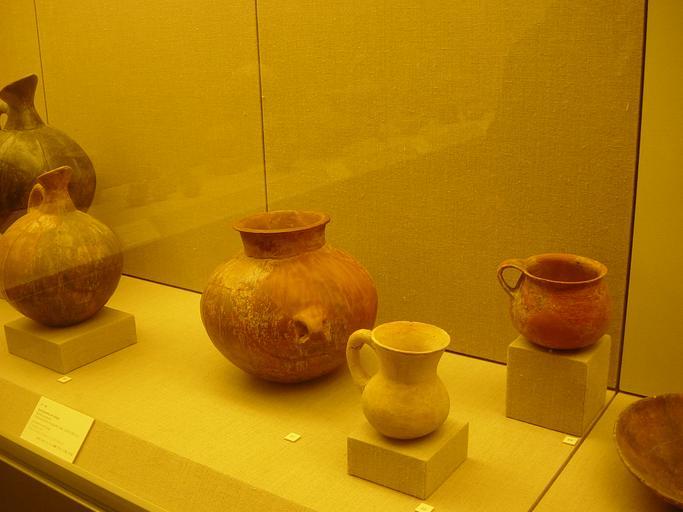 | Keywords: MuseAcrotiriItems55-57-6639.jpg Utilitarian terracotta objects Museum of Cycladic Culture Akrotiri excavation artifacts Santorini Cyclides Hellas Greece Own Taken April 3 2007 User Leonard G Von diesem Bild existieren die folgenden Bildbearbeitungen aus der Bilderwerkstatt Retouched versions of this picture from the german Graphic Lab Image MuseAcrotiriItems55-57-6639-1 jpg thumb left hue fixed Cycladic culture Pottery discovered at Akrotiri | ||||