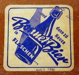 Keywords: Musée Européen de la Bière, Beer coaster pic-148.JPG Bonnet Bier Photographed through glass own 2012-08-16 16 47 07 AlfvanBeem CC-zero Trademarked Musée Européen de la Bière Nostalgia by Alf van Beem Beermats