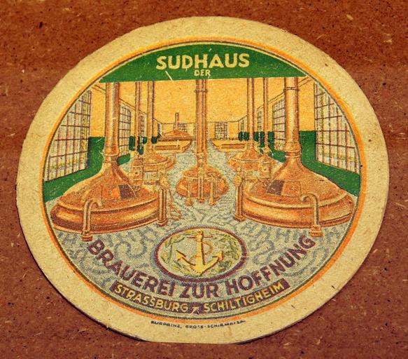 Keywords: Musée Européen de la Bière, Beer coaster pic-165.JPG Sudhaus der Brauerei zur Hoffnung Photographed through glass own 2012-08-16 16 51 14 AlfvanBeem CC-zero Trademarked Musée Européen de la Bière Nostalgia by Alf van Beem Beermats