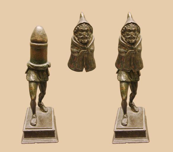 | Keywords: Musée Picardie Archéo 03.jpg Priape dit de Rivery d'après son lieu de découverte statuette de Priape constituée de deux parties trouvée à Rivery Somme en 1771 2ème moitié du 1er siècle après JC Musée de Picardie à Amiens Montage photo montrant les deux parties séparées et réunies Bronze statuette possibly of the Roman fertility god Priapus made in two parts shown here in assembled and disassembled forms This statuette has been dated to the late 1st century C E It was found in Rivery in Picardy France in 1771 and is the oldest Gallo-Roman object in the collection of the Museum of Picardy This figurine represents the deity clothed in a cuculus a Gallic coat with hood and may be an example of the Genii cucullati This upper section is detachable and conceals a phallus Own 2007-07-08 Vassil <gallery> Image Musée Picardie Archéo 03sharp jpg sharpened the phallus npi </gallery> Musée de Picardie Ancient Roman bronze statuettes Statuettes of Priapus Genii cucullati Ancient Roman erotic bronzes Rivery |