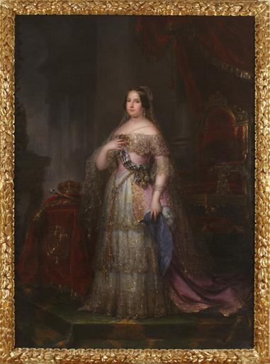 | Keywords: Museo del Romanticismo - CE0871 - Isabel II.jpg Retrato de la reina Isabel II de España 1830-1904 que fue hija del rey Fernando VII y la madre de Alfonso XII 1845 oil on canvas Size cm 162 226 Institution Museo del Romanticismo http //ceres mcu es/pages/Main accession number CE0871 MR PD-old-100 cc-by-sa-4 0 Portrait paintings of Isabella II of Spain 1845 Female portrait paintings by José Gutiérrez de la Vega Paintings by José Gutiérrez de la Vega in the Museo del Romanticismo de Madrid Female portrait paintings in the Museo del Romanticismo de Madrid Painted portraits of kings of Spain in the Museo del Romanticismo de Madrid 1845 in Spain 1845 portrait paintings from Spain Male 19th-century oil portraits of standing women at full length 1845 Right hand on chest in portrait paintings 1845 Portrait paintings of women with crowns on cushions 1845 Red drapery in portrait paintings 1845 Sash of the Order of Charles III in portrait paintings 1845 Sash of the Order of Ladies of Queen Maria Luisa in portrait paintings 1845 Tassels in portrait paintings 1845 Thrones in portrait paintings 1845 |