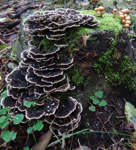 Keywords: mushroom autumn forest deadwood europe porling tree fungus groups pest trametes versicolor