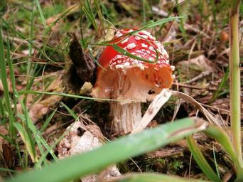 Keywords: mushroom fly agaric autumn toxic plant grass forest red green spotted