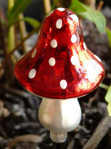 Keywords: mushroom fly agaric glass decoration ornament garden decoration garden decor decor red points
