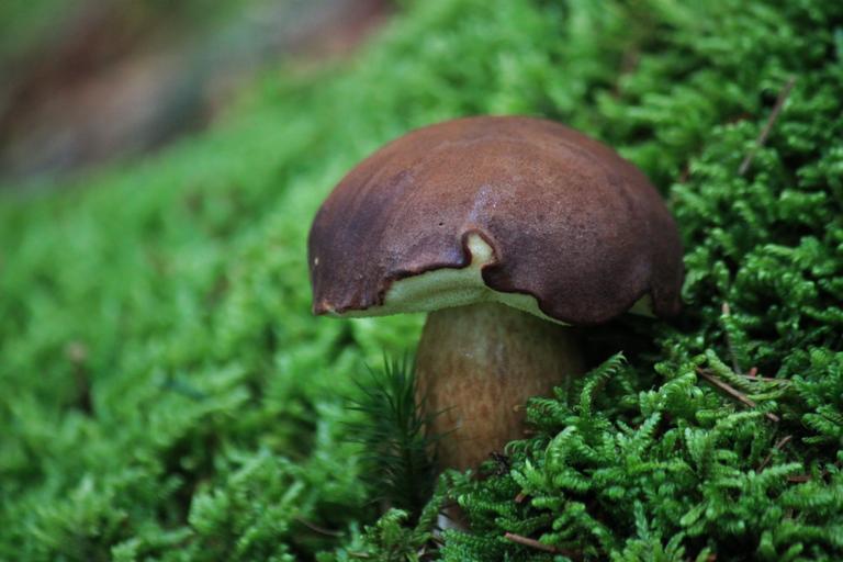 Keywords: mushroom mushrooms chestnut mushroom gathering forest brown green macro datailaufnahme close hat moss edible forest plant nature plant flora autumn