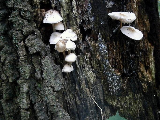 Keywords: mushrooms mushroom white nature forest tree log tribe bark autumn autumn forest collection many group variety numerous